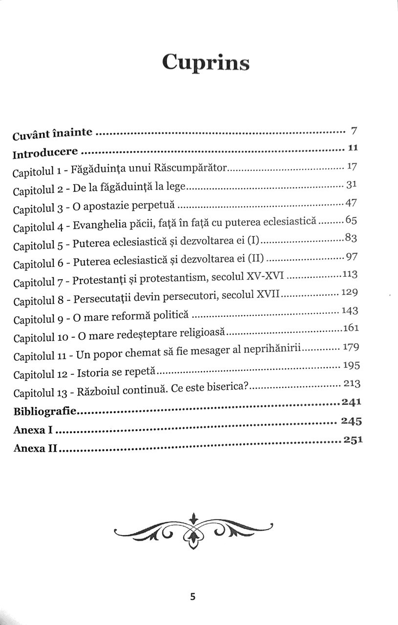 Istoria creștinismului dovedește că a existat o continuă luptă pentru supremație, iar omul a fost permanent asaltat de autoritățile ecleziastice pentru a i se îngrădi libertatea. Dumnezeu ne-a oferit o permanentă istorie a eliberării, istorie care este trasată din Eden până în prezent și până atunci când îl vom întâmpina pe Domnul pe norii cerului. Autorul explorează în această carte lupta dintre libertate și sclavie ilustrată în istoria biblică, dar și în experiența personală. Cu toatea acestea nota pozitivă este dată de „Evanghelia Veșnică”, singura care poate oferi nădejdea mântuirii.