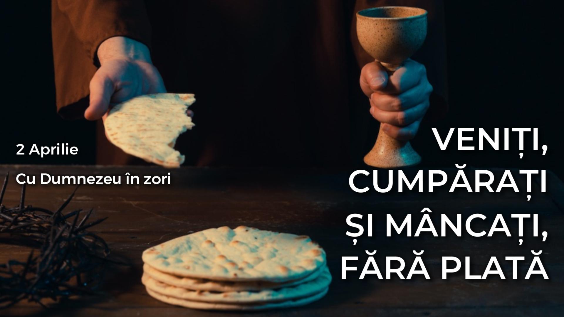 „Voi, toți cei însetați, veniți la ape, și voi, care n-aveți bani, veniți, cumpărați și mâncați. Veniți, cumpărați vin și lapte fără bani și fără plată!”